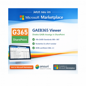 - Unser GAEB Viewer ist jetzt offiziell im Microsoft Marketplace verfügbar!Ein kleiner Moment für uns – ein großer Schritt für die digitale Bauwelt. Ab sofort bieten wir eine vollständig integrierte GAEB-Viewer-Lösung für SharePoint an. Mit nur einem Klick lassen sich Ihre GAEB-Dateien direkt aus der SharePoint-Dokumentenbibliothek in GAEB365.online öffnen und anzeigen – ohne Medienbruch, ohne Zusatzaufwand. Damit wird die Zusammenarbeit im Bauprojektumfeld noch effizienter, transparenter… Weiterlesen »Unser GAEB Viewer ist jetzt offiziell im Microsoft Marketplace verfügbar!